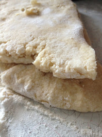 Once this is about 3/4ths of an inch thick. Use a biscuit cutter/cup/cookie cutter to form scones. Push straight down and try not to twist.
